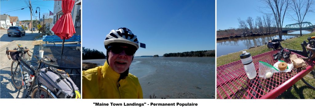 Observing the significant climbs and descents on the stunning drive to Putney VT, I began to question whether my planned second permanent would be achievable. With the next-day forecast calling for near-freezing temperatures and possible precipitation, I decided to “scale back” and do a shorter 103 km “Putney Jaunt” which would give me VT and NH. My bike was loaded and ready in the motel room, and my cold weather kit was laid out for an early morning start. However, after looking at the view out of my motel room door, and contemplating the potential consequences of the snowy Vermont descents, I realized I had to cancel my Vermont permanent. So instead of a late-day post-permanent drive to Bath, I enjoyed a relaxed scenic drive through hilly, snow-covered New Hampshire arriving in Bath ME late afternoon. With the forecast still calling for cold and windy conditions for the next morning, I again pared down my ambitions for my final permanent, selecting the 106 km (787 m) Maine Town Landings permanent instead of the longer century. This permanent (plus 11 km rides to/from the perm start) provided a great first exposure to the wonderful cycling which Maine has to offer. [Permanent # 2 on Strava]